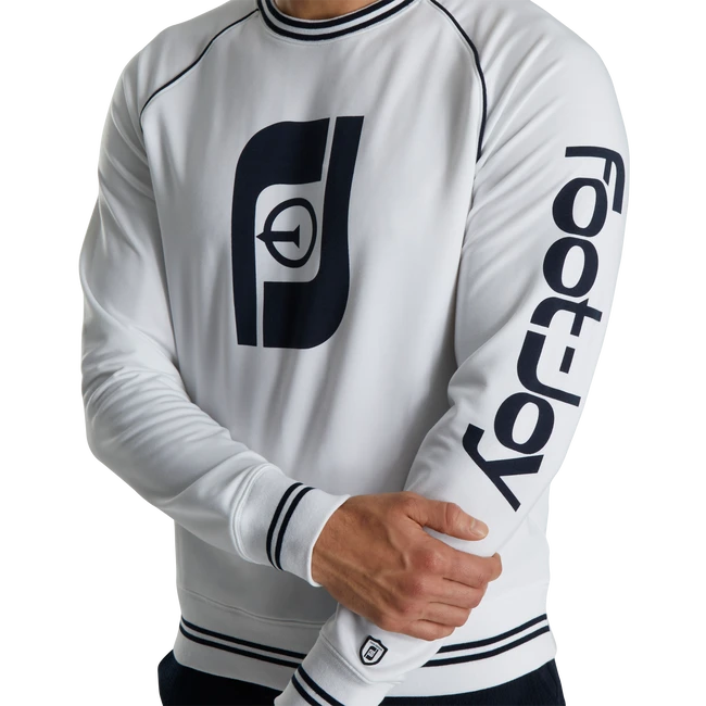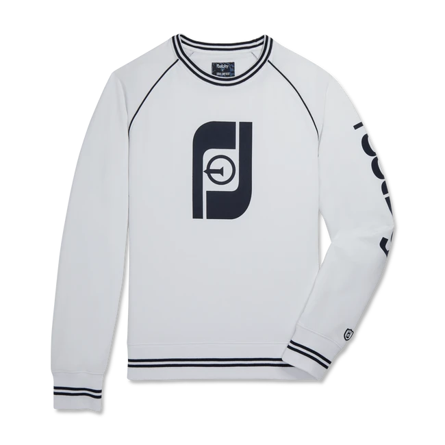 Provides comfort and warmth in a pullover design featuring a vintage golf and tee FJ logo.