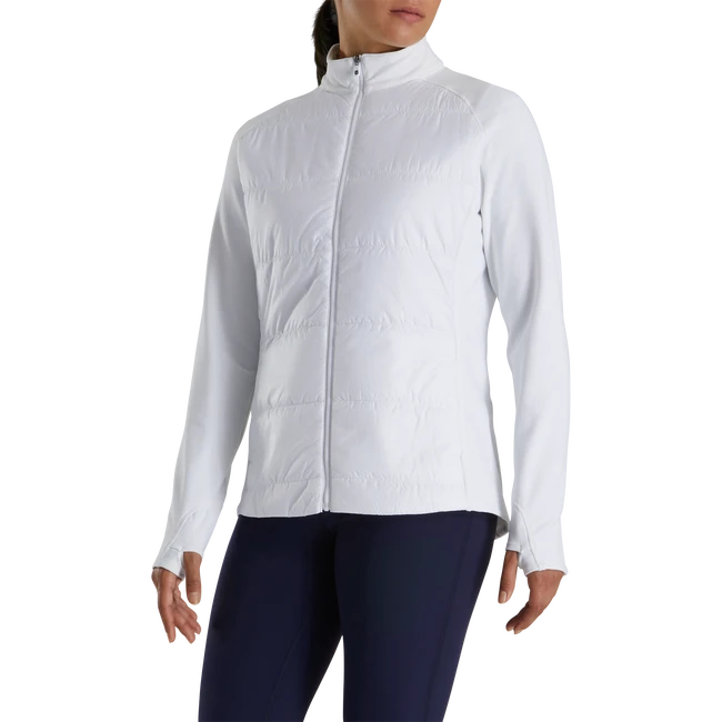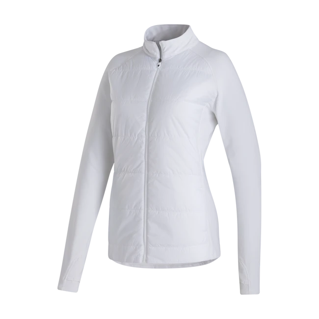 The Women’s Hybrid Jacket combines easy care fabric with thermal retention by utilizing quilted woven panels. Shop golf clothes for women today.