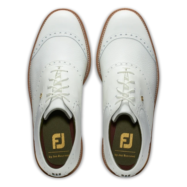 FJ has partnered with street-fashion designer Jon Buscemi to bring the Tour-proven Premiere Series to a new level. Authentic street style meets signature golf performance with our second edition of The Player’s Shoe. FJ by Jon Buscemi will be worn by FJ Ambassadors at THE PLAYERS Championship, with exquisite craftsmanship and gold detailing serving as a nod to the iconic PLAYERS Championship trophy.
